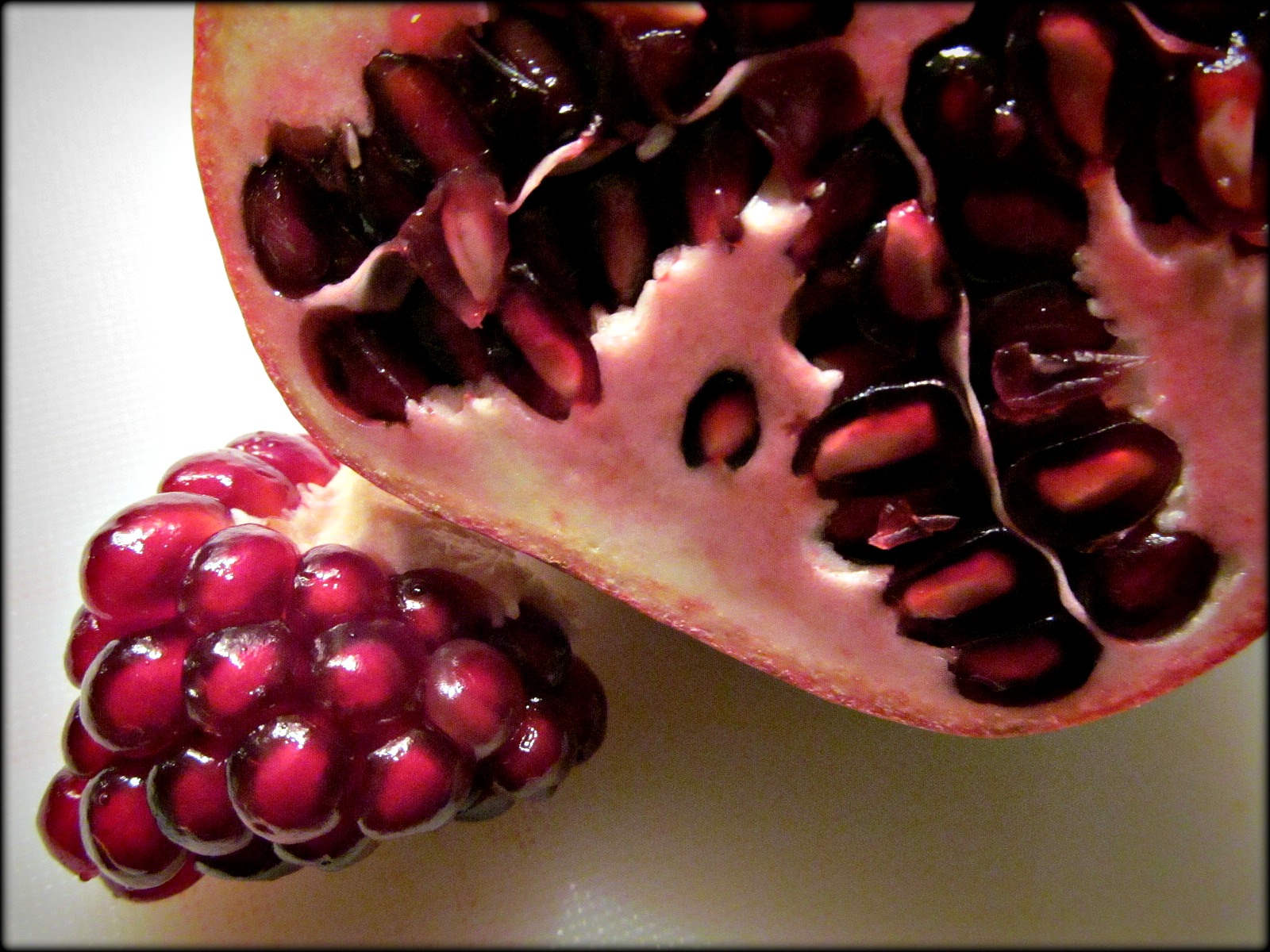 Wer keinen Zugang zu Granatapfelessig hat, kann auch Apfelessig nehmen. Dann aber aus der andern Hälfte des Granatapfels die Kerne auslösen, diese mit einer Gabel zerdrücken, den Saft auffangen und den in die Salatsauce geben.