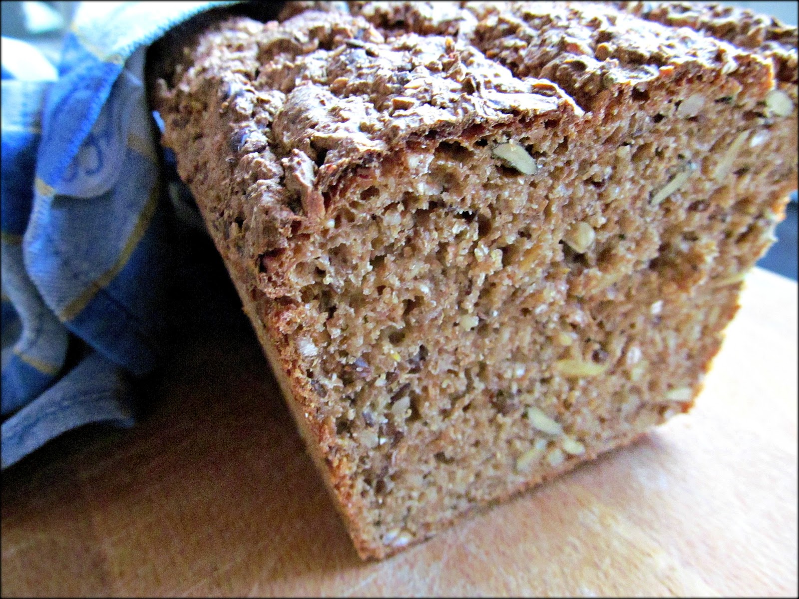 Ein tolles Vollkornbrot mit Kürbiskernen, Sonnenblumenkernen, Sesam, Leinsamen sowie ganzen Roggen- und Dinkelkörnern. Eine Köstlichkeit sondergleichen, rangiert in unserer Familie grad auf Platz 1. Der Aufwand allerdings ist nicht ganz ohne, weil es noch ein Kochstück und ein Quellstück gibt. Durch die ganze Körnergeschichte ist der Teig auch ziemlich schwer und braucht einige Zeit, um aufzugehen. Auch die Backdauer ist im Vergleich zu einem Hefebrot recht lang.