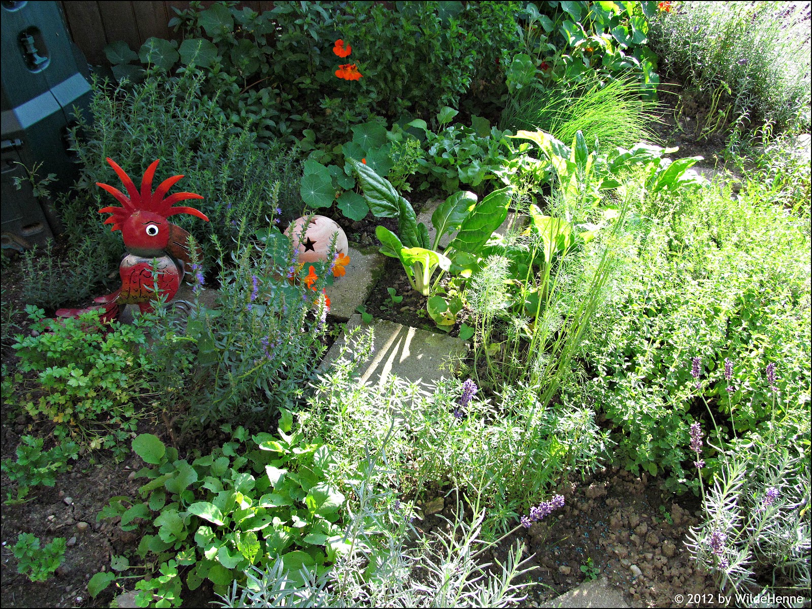 Vor einem Monat hatte ich ja meinen Kräutergarten schon mal gezeigt. Ich musste damals ein paar Kräuter neu pflanzen, weil mir im letzten Winter einiges erfroren ist. Und weil derzeit in diversen Blogs Kräutergärten gezeigt werden, zeige ich euch meinen auch noch mal: Denn guckt euch das an. Innerhalb eines Monats ist mein Kräutergarten dermassen zugewuchert, dass ich kaum noch durchkomme.