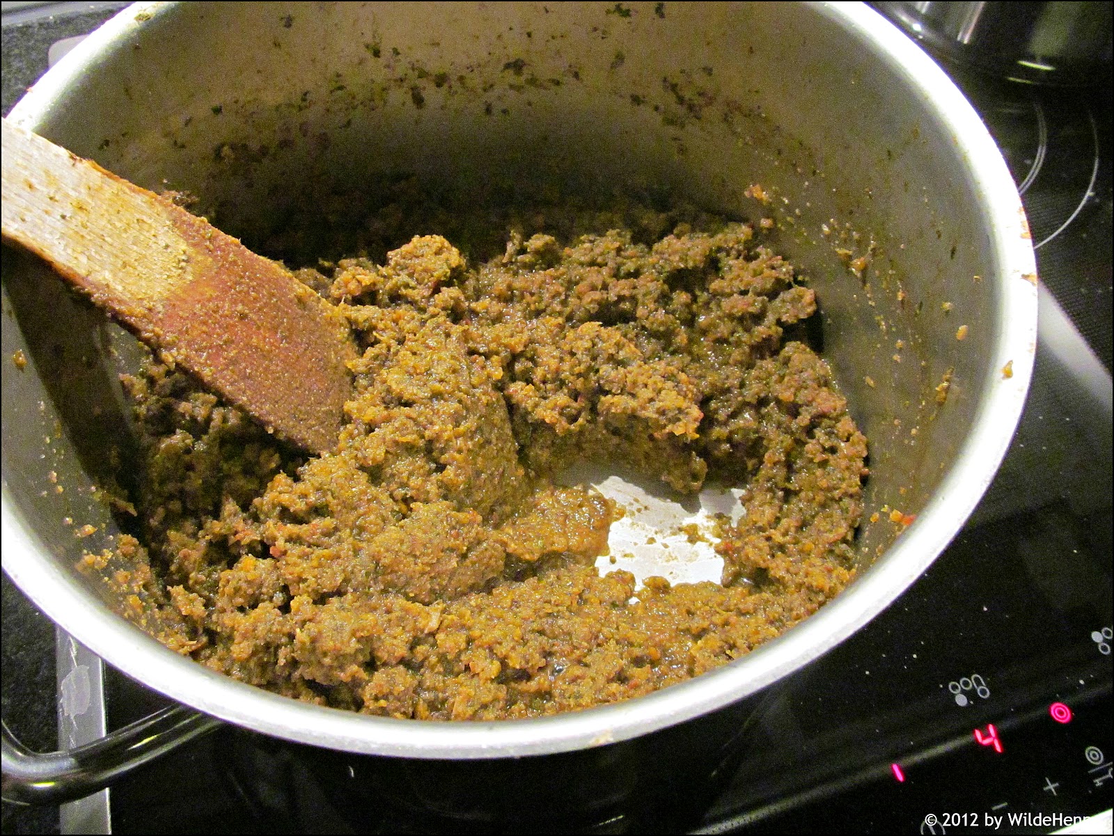 Ich erstelle hier mal ein grobes Rezept, wie ich die Paste gemacht habe. Aber vorgängig noch ein paar Bemerkungen zu den Zutaten. Ganz im Ursprung kommen keine Gemüse rein, die hatte Robert aus Mangel an genügend Kräutern mit dazu gegeben, diese Idee hatte bereits das Elsässerli übernommen und ich auch. Bei den Gemüsen hatte ich extra keinen Sellerie mit dabei, weil ich bereits bei den Kräutern die Blätter vom Stangensellerie drin hatte. Die Zucchini dümpelten schon länger im Kühlschrank rum, die mussten weg, somit sind sie auch mit in den Topf gewandert. Beim Wein hatte ich diverse angefangene Flaschen – und zwar rot wie weiss. Da ich derzeit Medis nehmen muss, ist nix mit Wein trinken, drum wanderten der Schluck Humagne rouge, der Riesling, ein Rest Johannisberg sowie eine angefangene Flasche Vully mit in den Topf.
