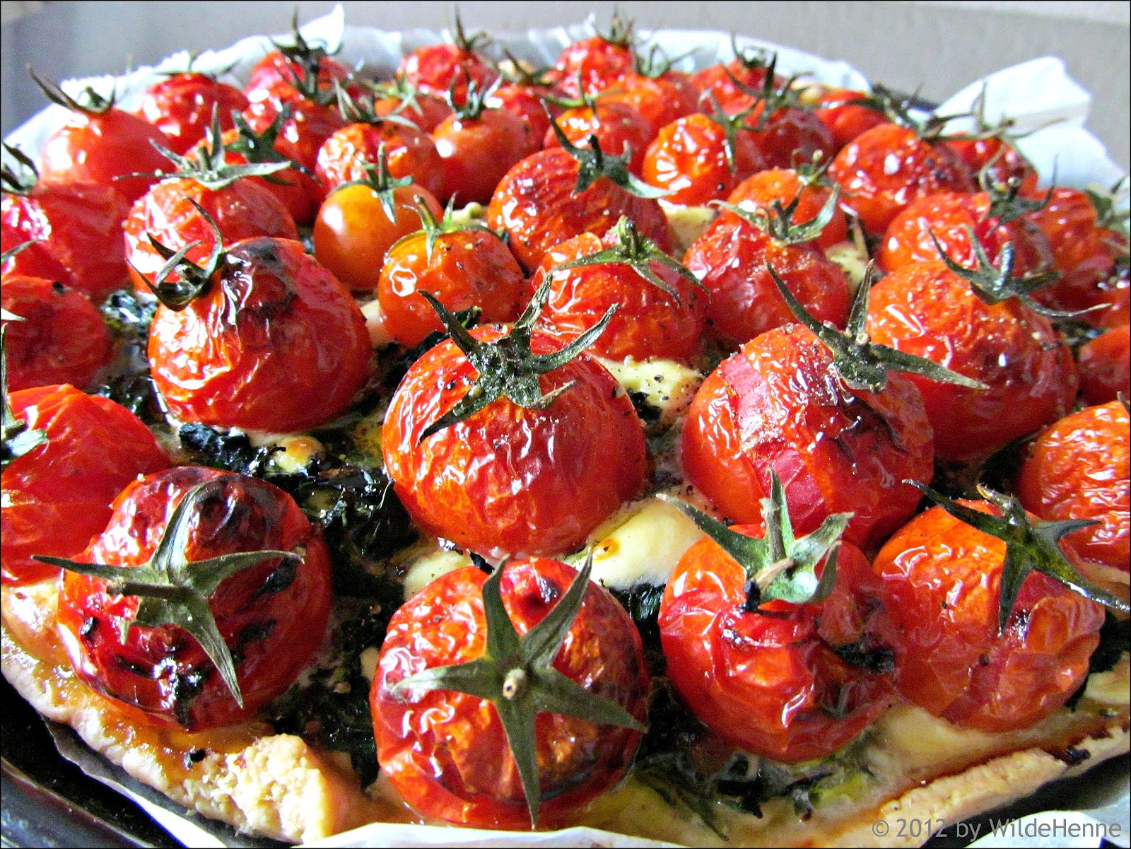 Diese Tomatentarte sieht ja unglaublich lecker aus. Äußerst fotogen mit den grünen Stilansätzen, die du drangelassen hast. Aber ich habe mal gelernt, dass die Strünke irgend etwas Ungesundes enthalten und man sie deshalb entfernen soll. Oder wird das Ungesunde, von dem ich nicht mehr weiß, was es genau ist, durch das Erhitzen "neutralisiert"?